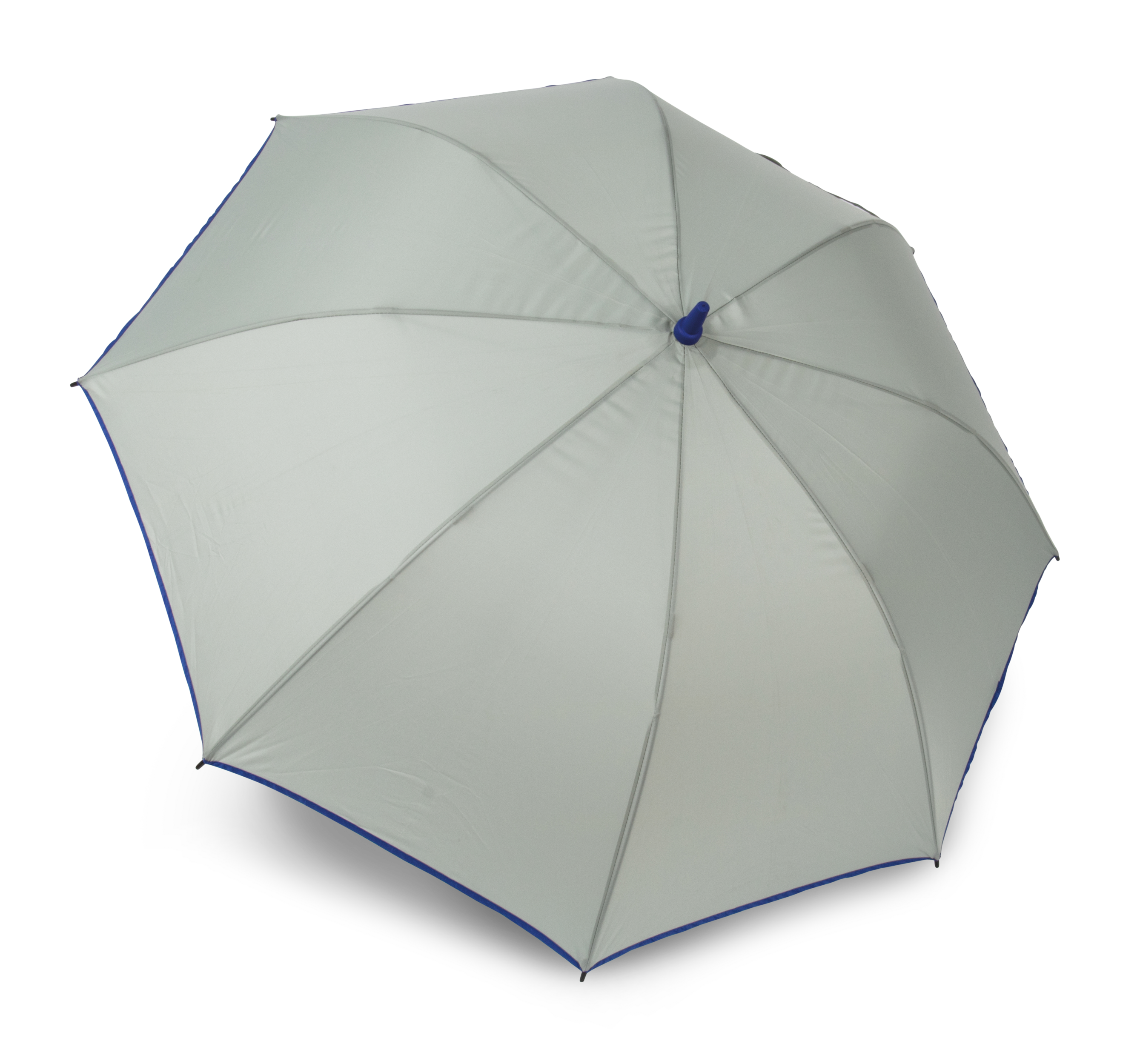 100% polyester. Large golf type umbrella with automatic opening. Consists of a metal shaft measuring 14 mm, a fibreglass frame and coloured polycarbonate tips. The canopy is made from polyester pongee. Panel edges, handles and shaft in contrasting colour