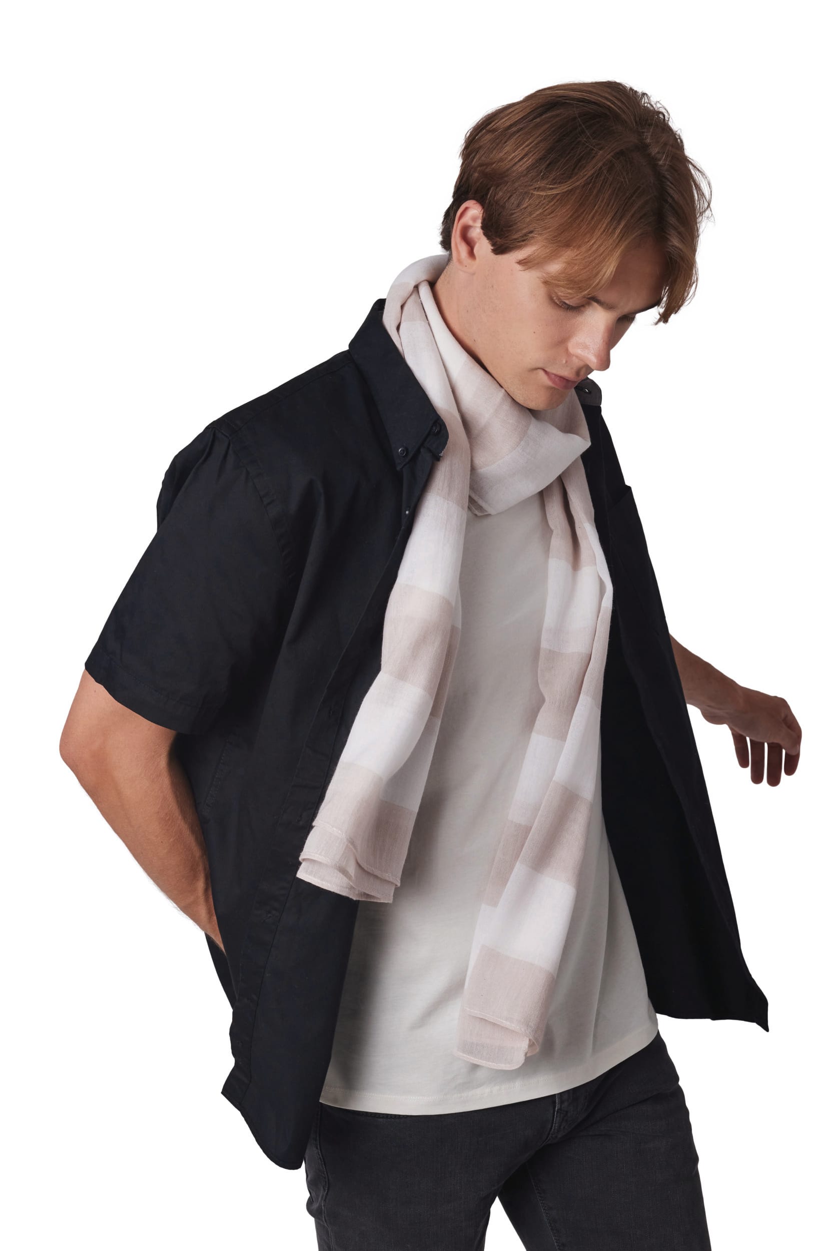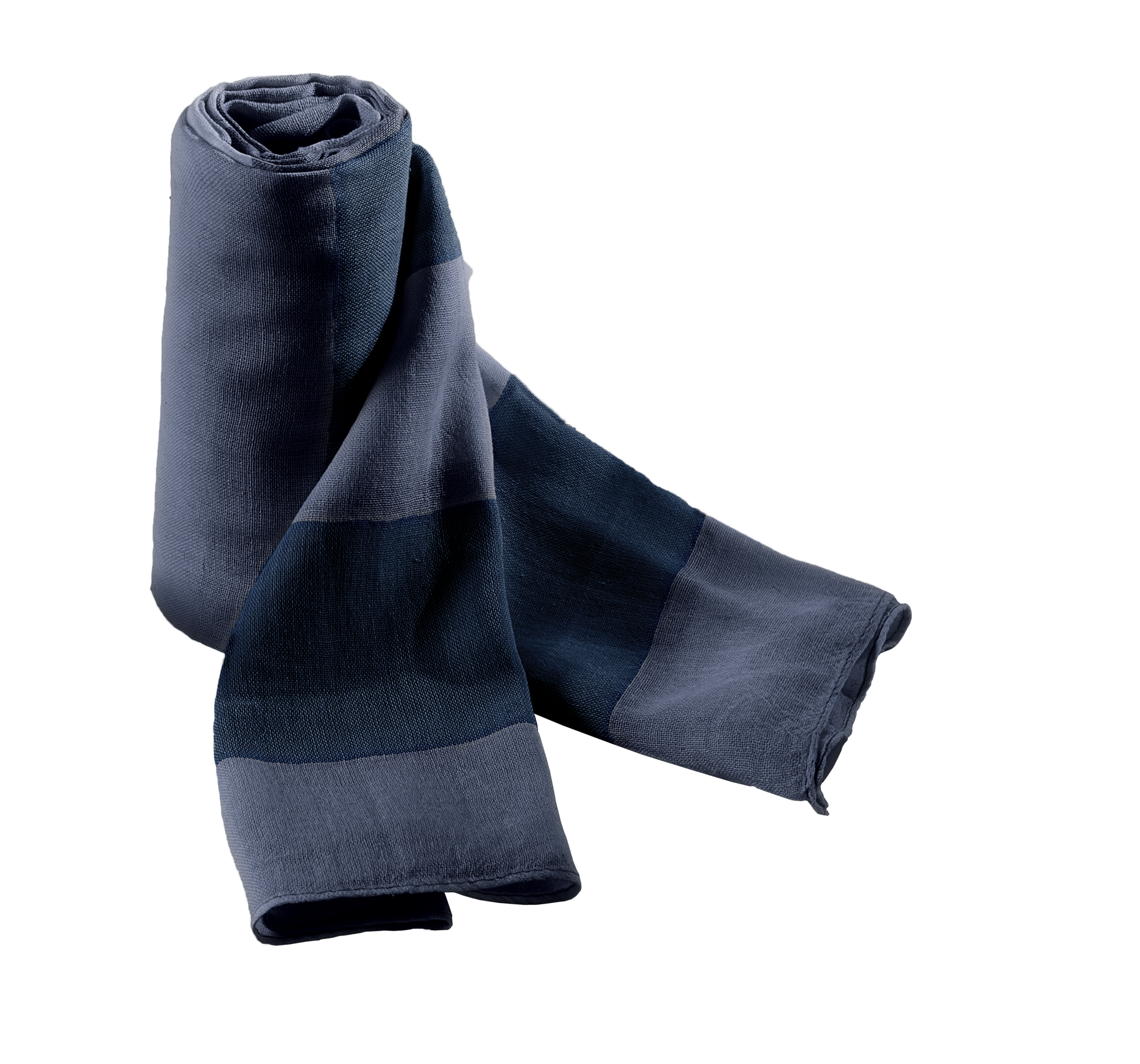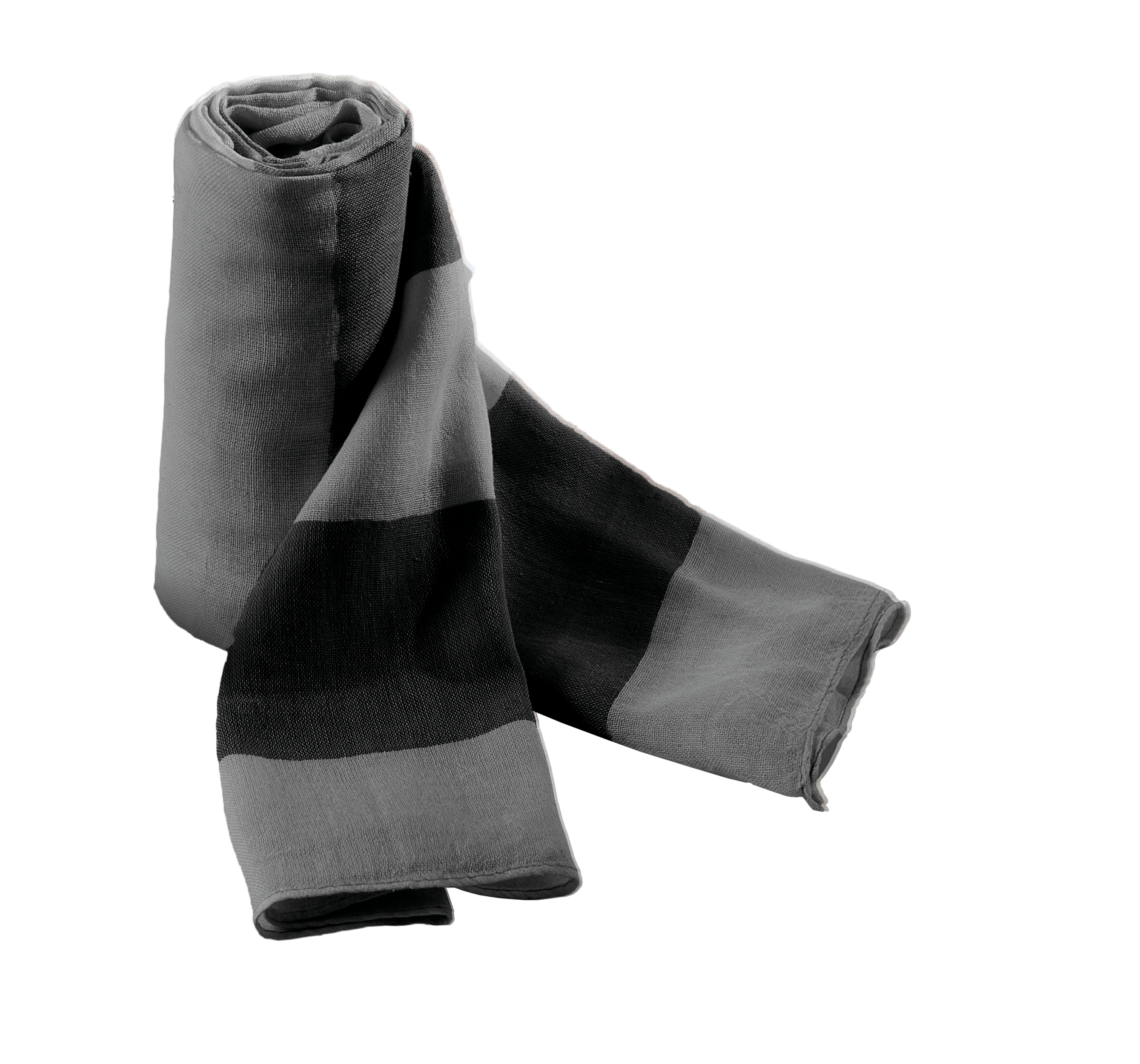 100% cotton. Lightweight wide striped two-tone cotton voile scarf. Stripe width = 8cm. Rolled edges.
