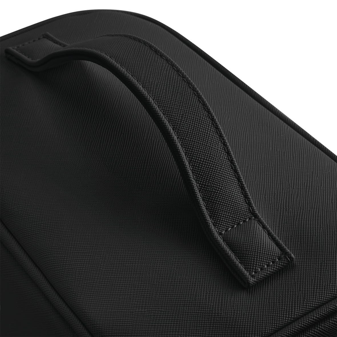 100% polyurethane imitation leather, fine-grain saffiano leather. Multi-purpose vanity case. Main compartment and inner pocket with zip fastening, inner pouch pocket and soft-touch lining. Zip fastening in shiny gold metal, handle in the same fabric. TearAway detachable label, easy to re-label.