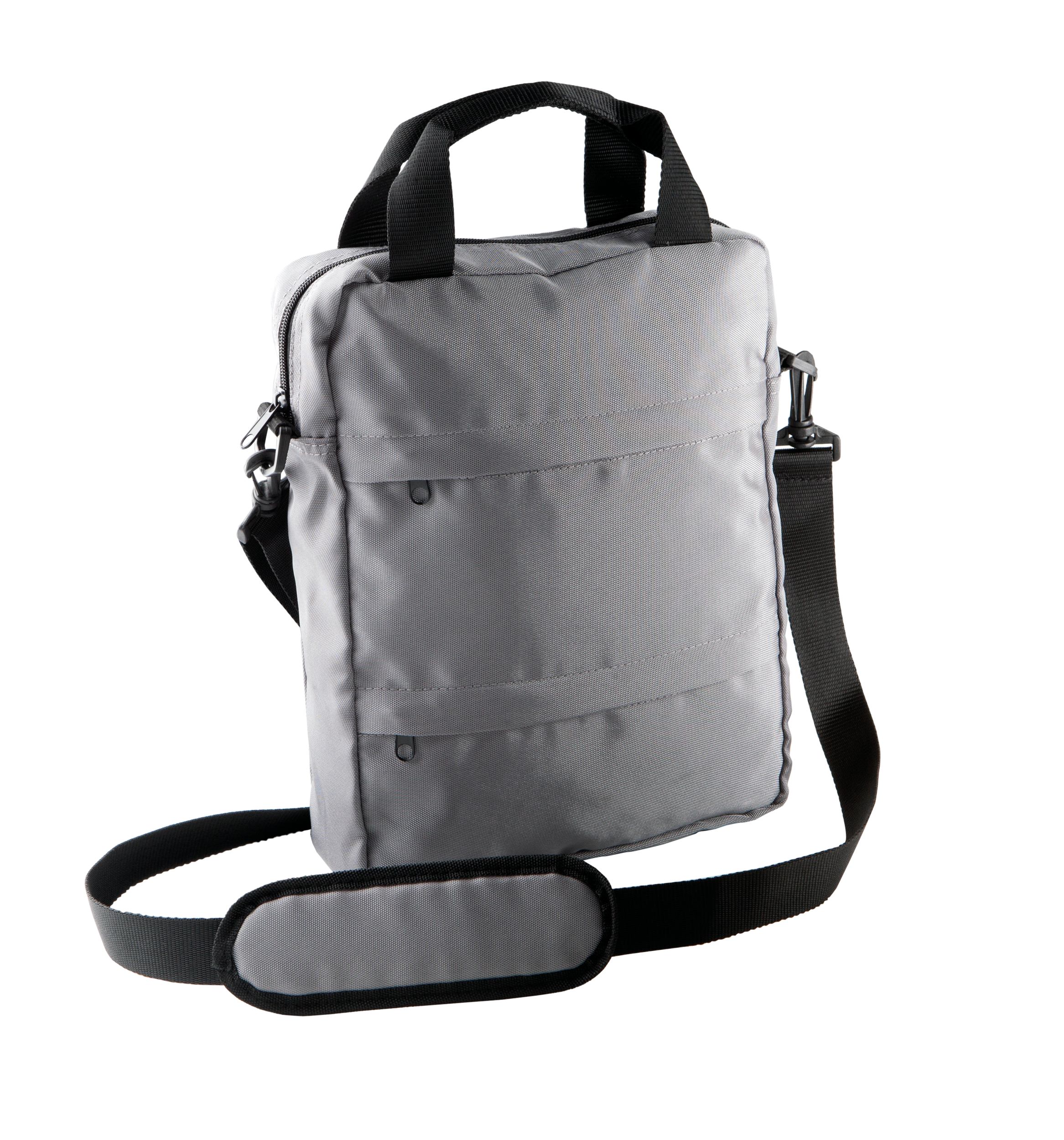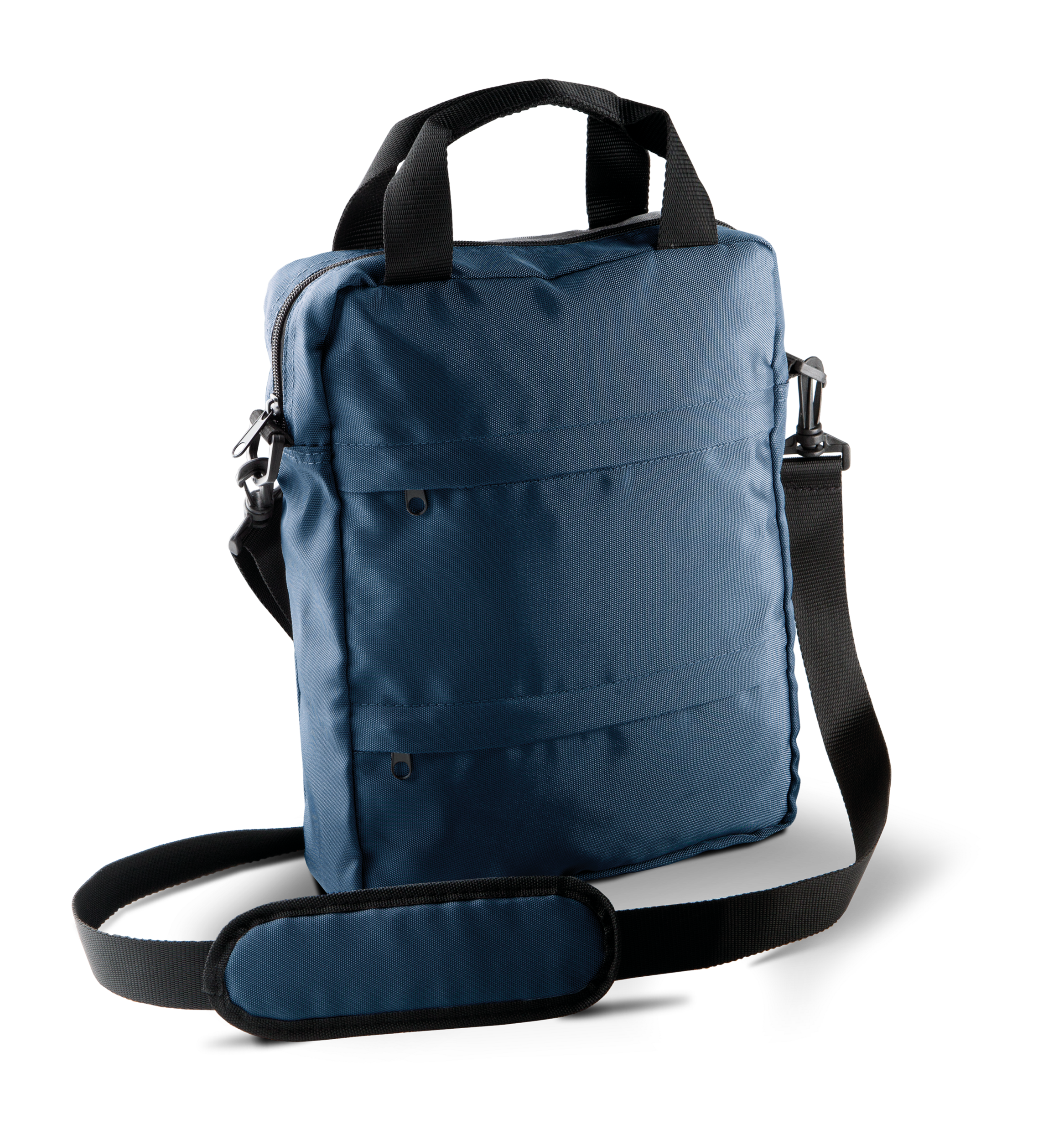 Bandolera mensajero en poliéster 900D para tabletas. 3 bolsillos frontales. Asa ajustable y amovible.