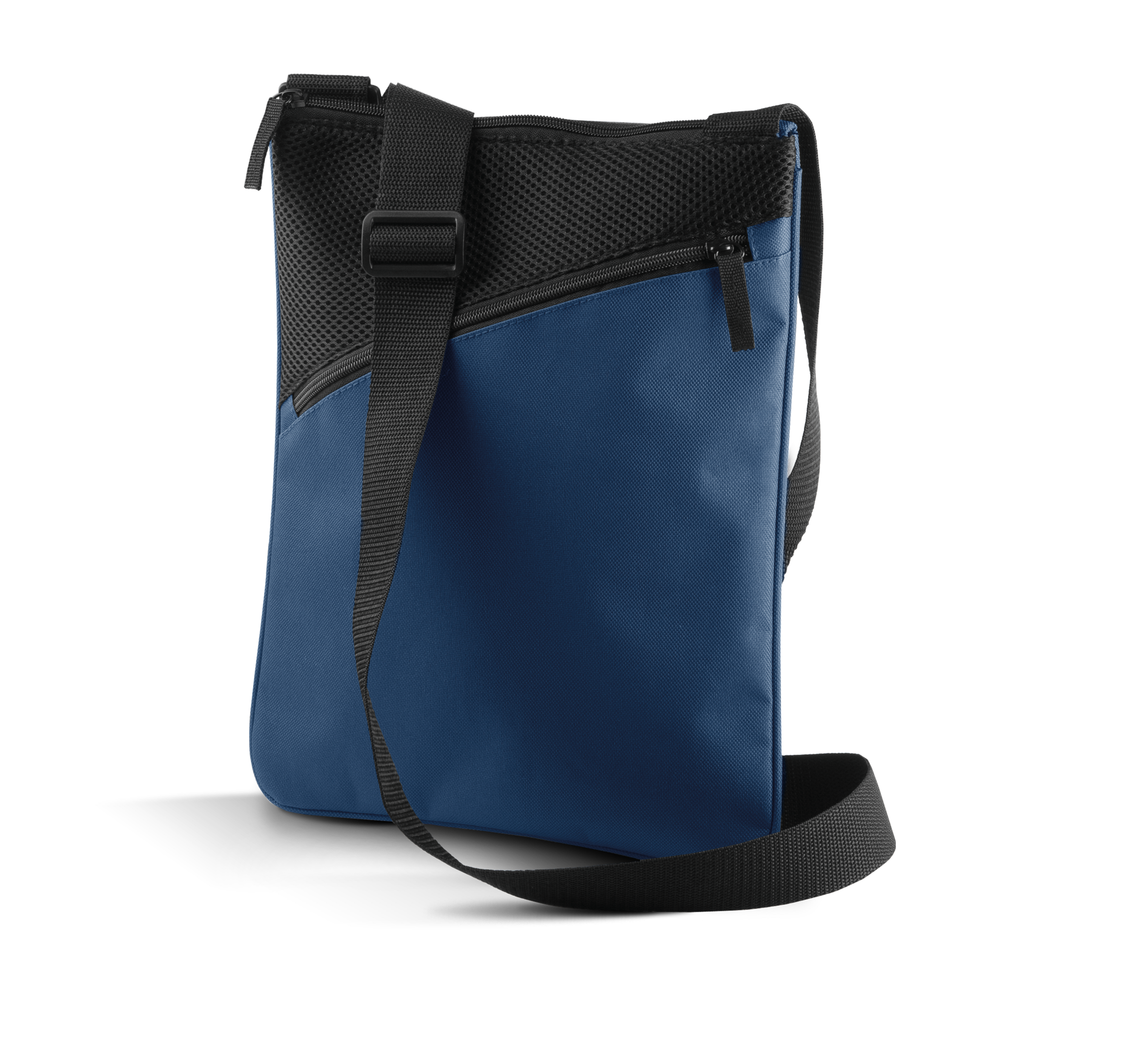 Bandolera porta documentos/tableta en poliéster 600D. Bolsillo frontal. Asa ajustable.