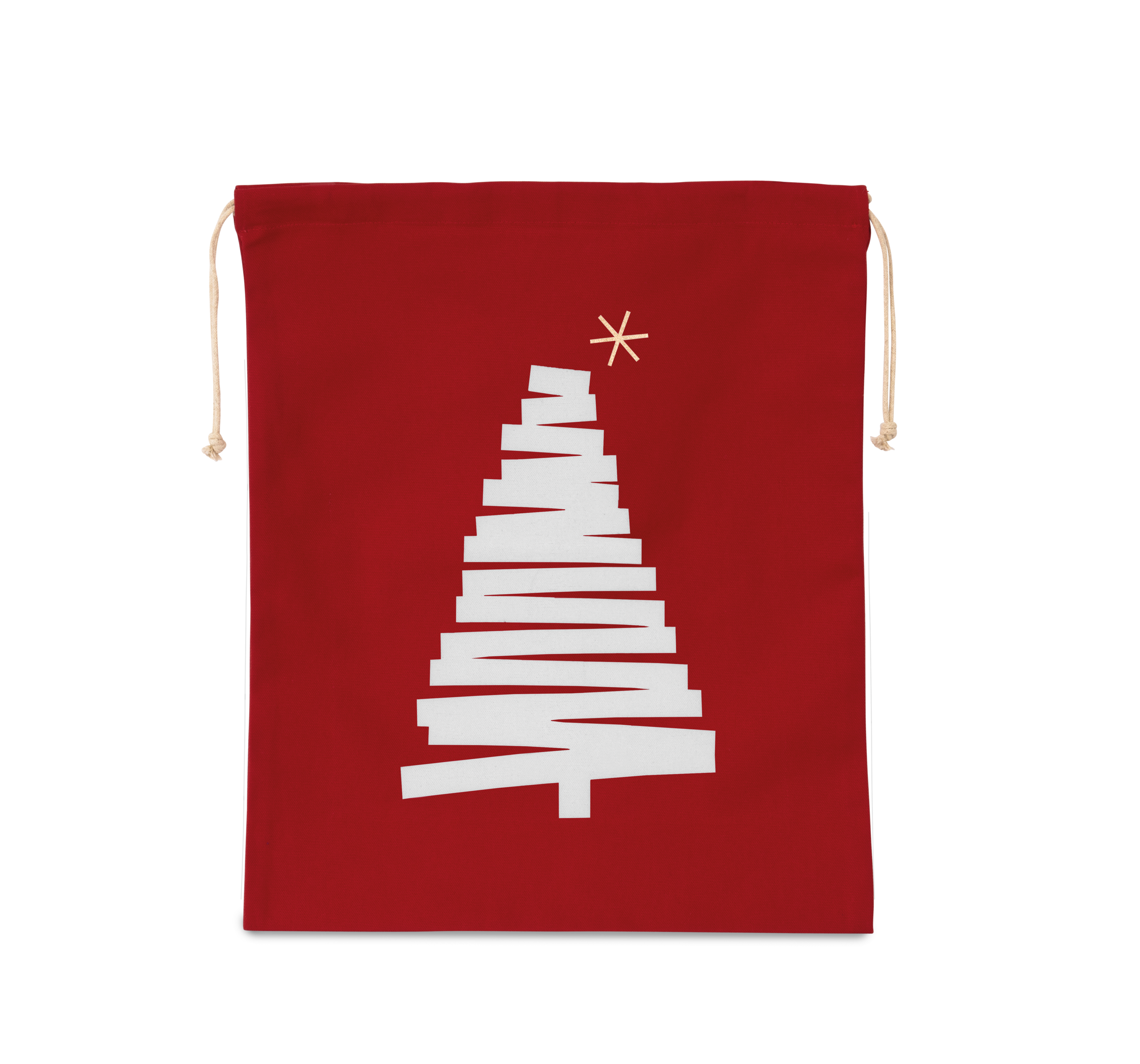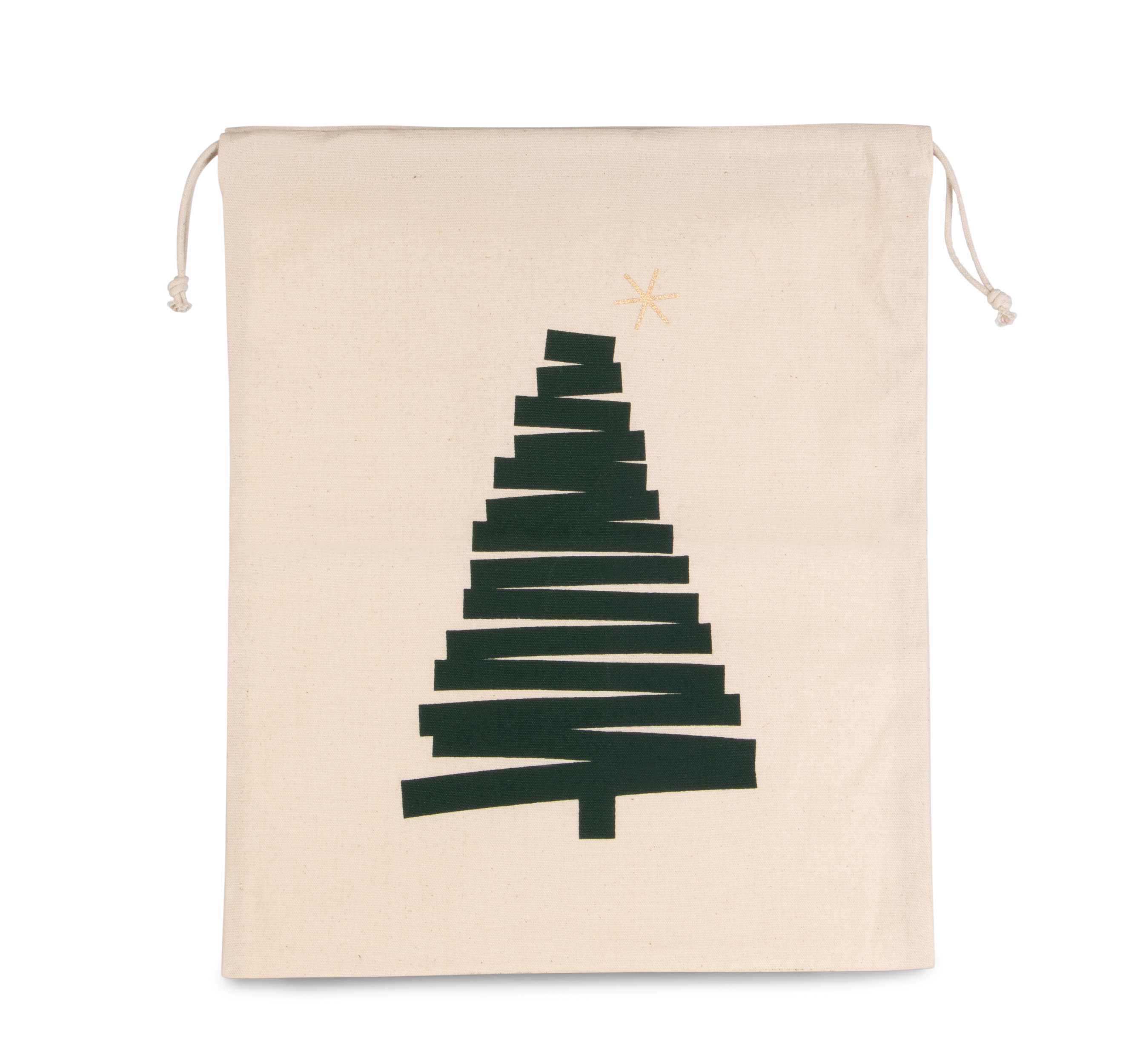 100% algodón. Bolsa con cierre de cordón, estampado un pino.