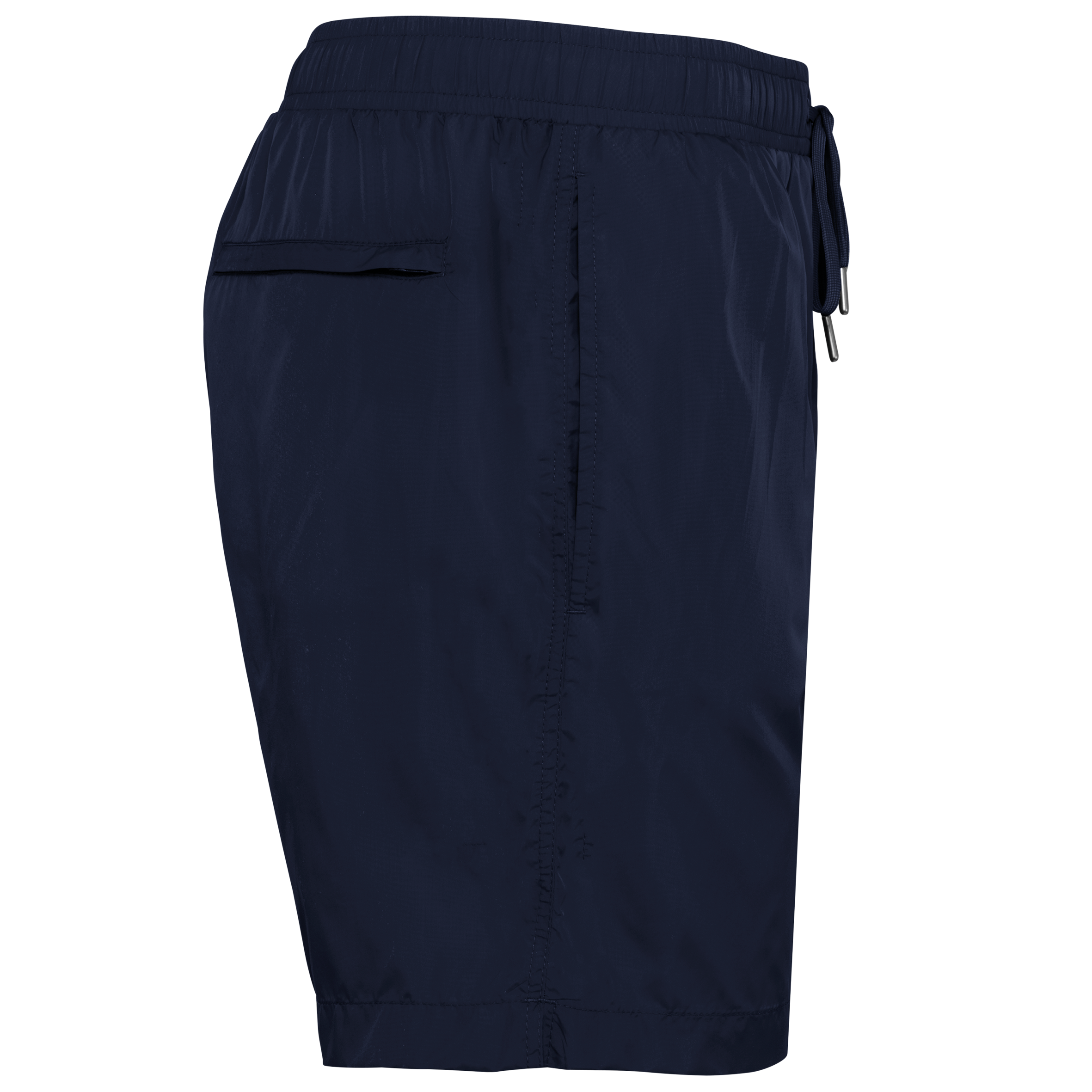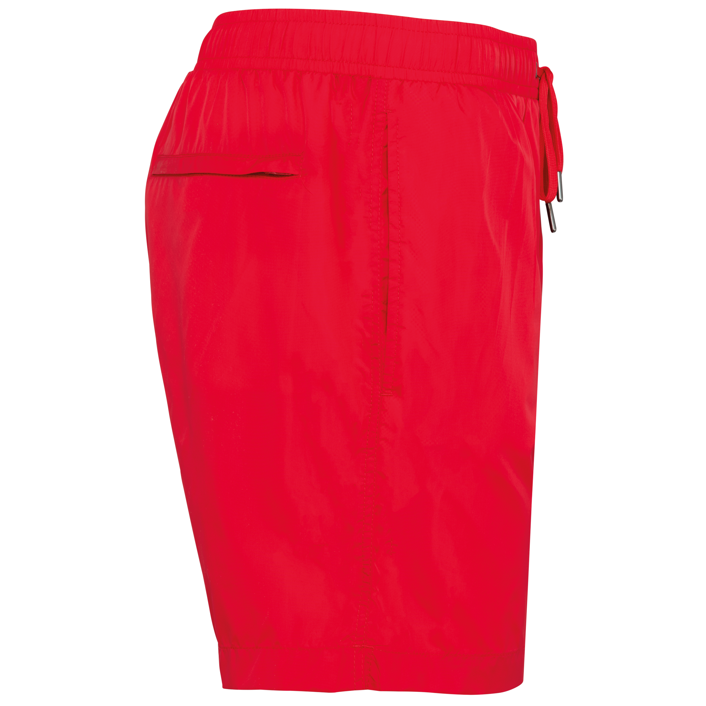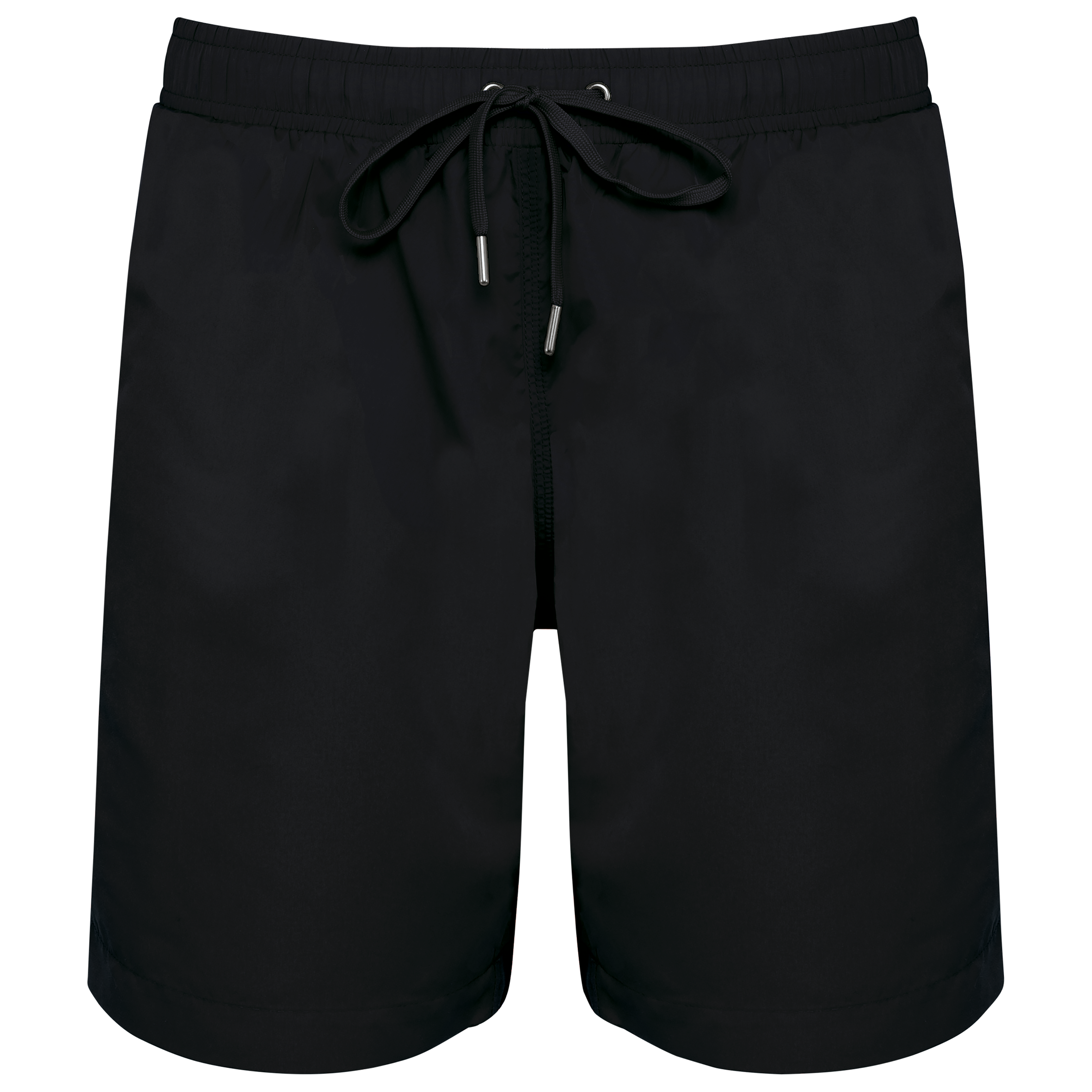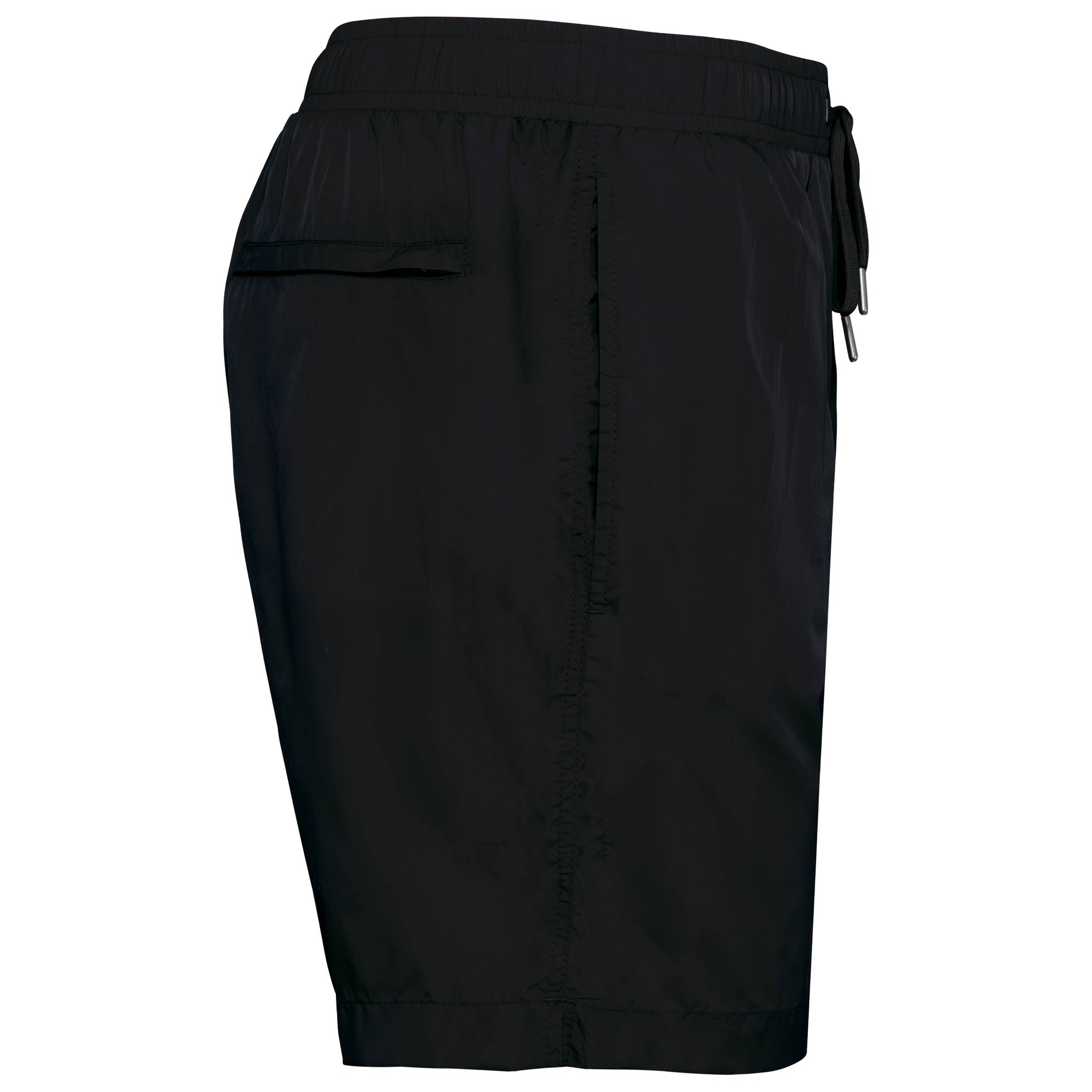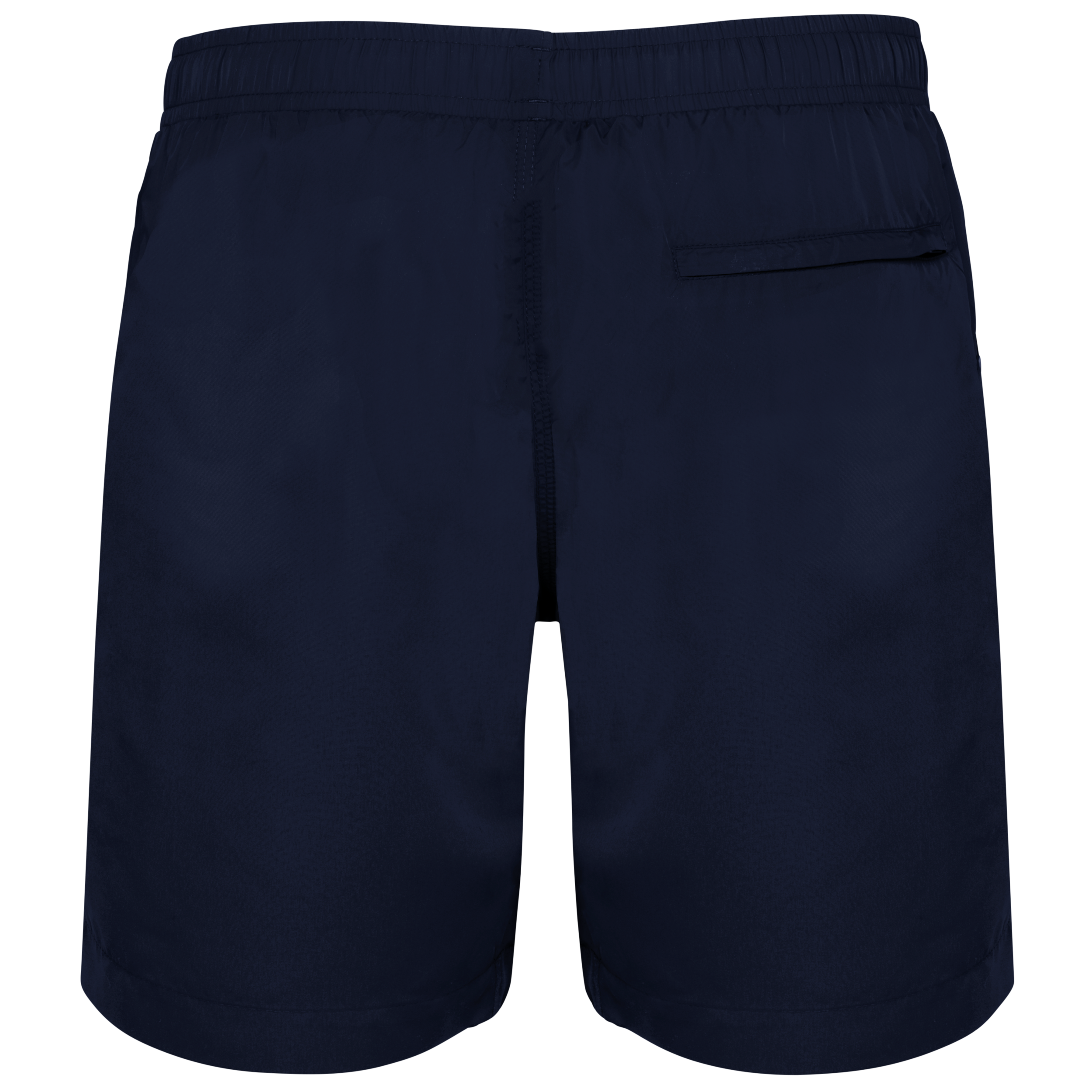 100 % poliamida. Corte recto. 2 bolsillos laterales abiertos con bolso en punto de red. Pespuntes de refuerzo en los bolsillos, la entrepierna, el bajo de la pernera y la parte posterior de la cintura. Cintura elástica con cordón de ajuste liso con punta metálica. Slip interior de punto de red con acabado en bies elástico para mayor confort. Bolsillo trasero ribeteado con cremallera de nylon. Doble pespunte en la entrepierna y en los laterales. Sin etiqueta de marca en la cintura, únicamente una etiqueta con la talla para facilitar la personalización.