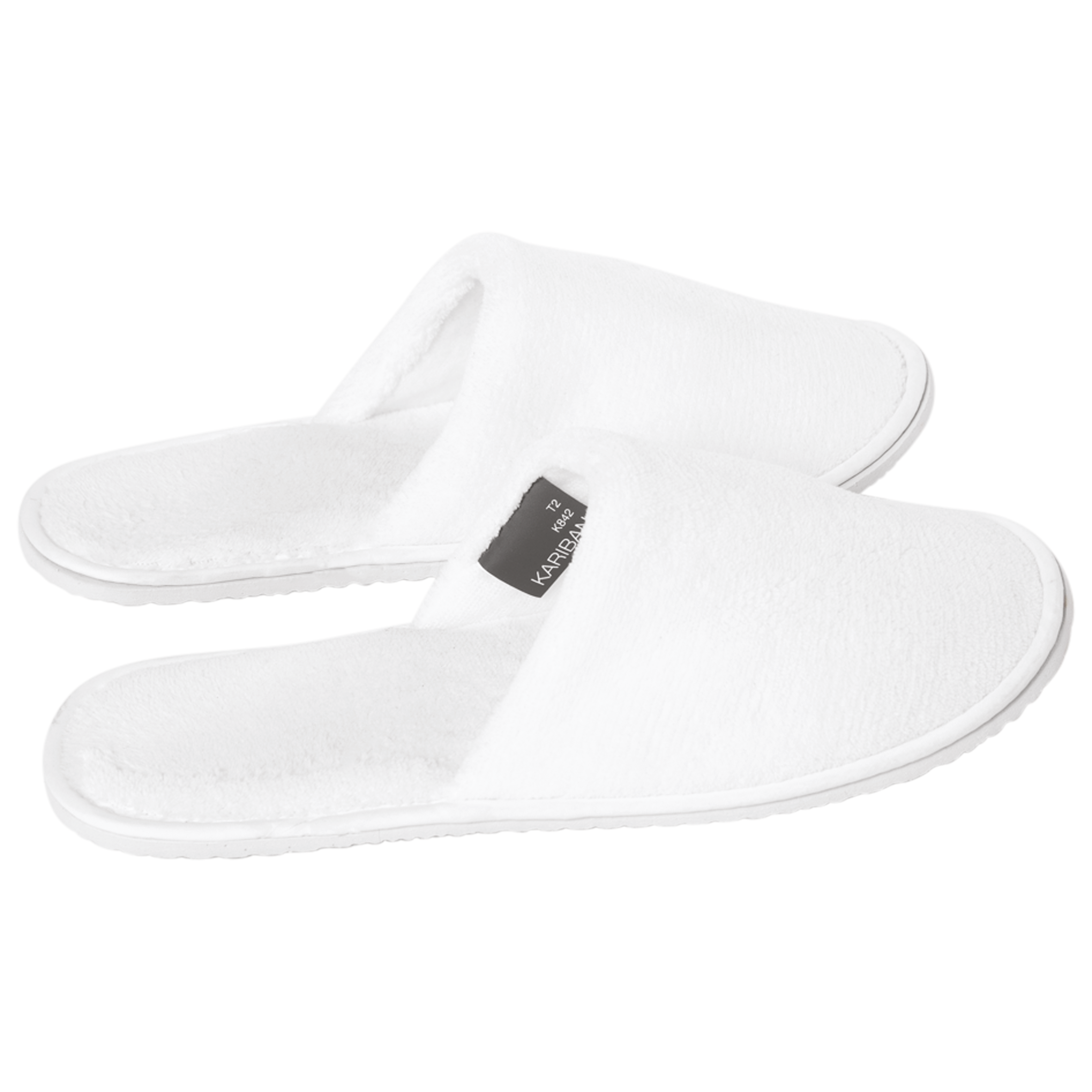 100% polyester. Maille tissu éponge. Semelle EVA anti-dérapante. Semelle intérieure rembourrée au niveau du talon. Finition biais. Chausson mules à bout fermé.