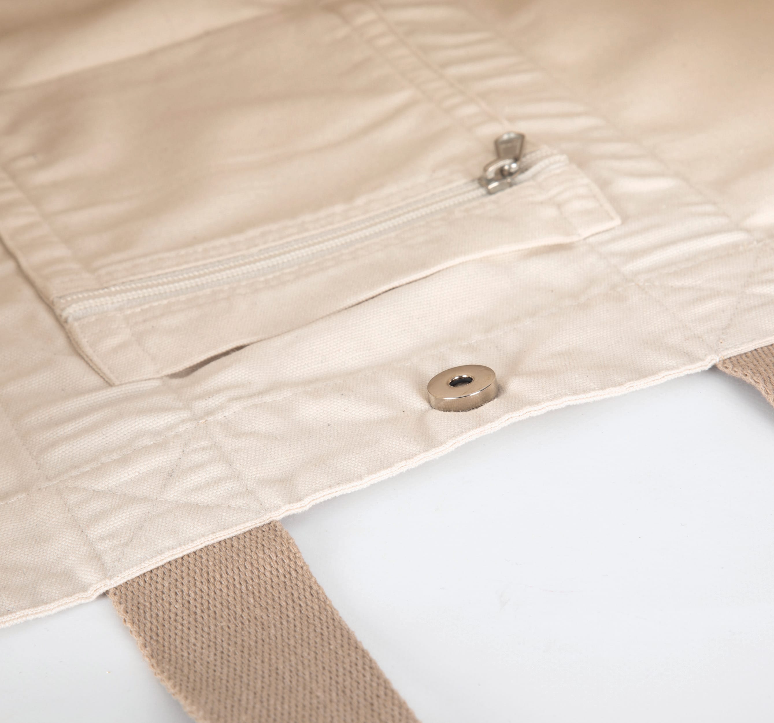 67% coton recyclé / 30% polyester recyclé / 3% autres fibres (Black Night), 75% coton recyclé / 22% polyester recyclé / 3% autres fibres (Ecume). Les anses de couleurs contrastées cousues tout le long du corps du sac apportent une touche d'originalité et une plus grand résistance. Le sac possède une poche intérieure avec fermeture zippée pour ranger en toute sécurité clés et téléphone. Fermeture à bouton magnétique.