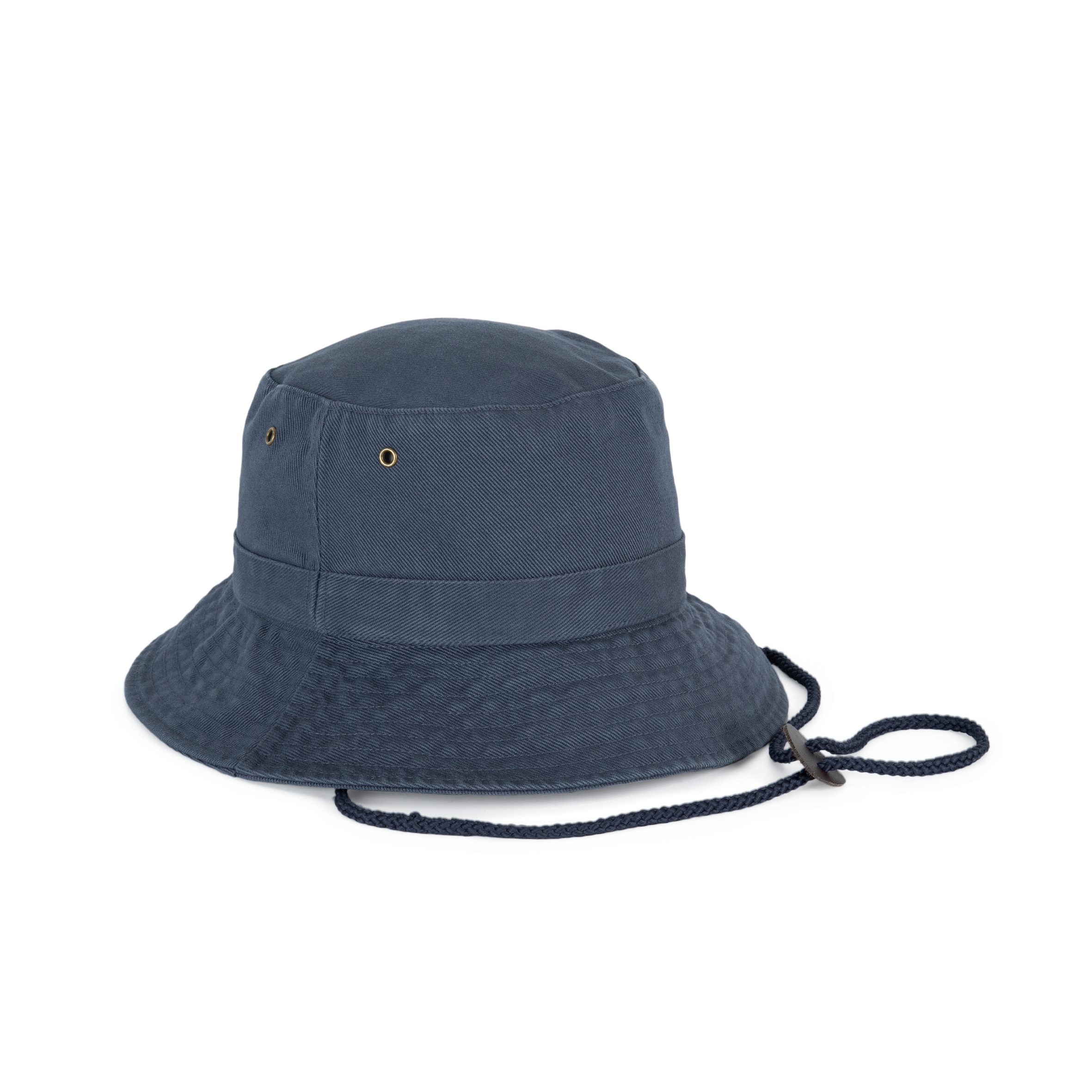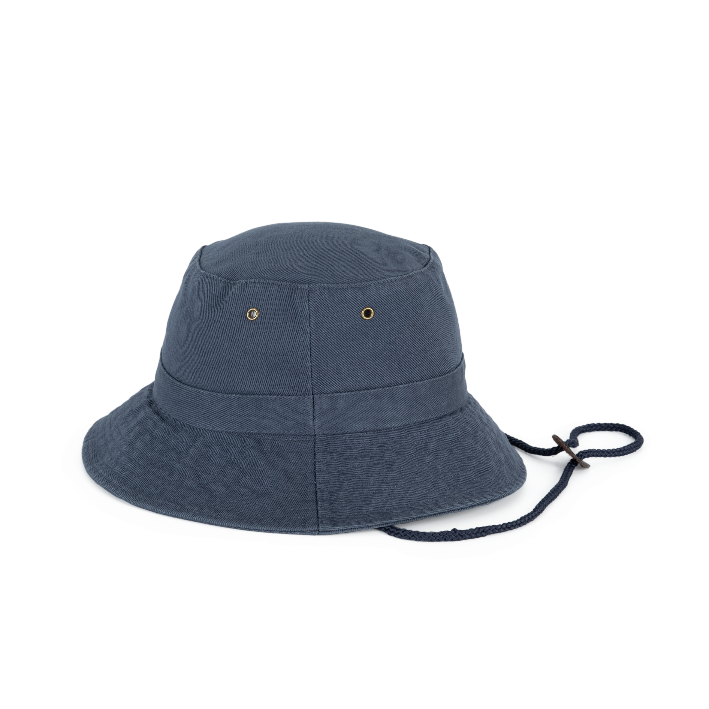 100% coton sergé brossé épais. Finitions en surpiqûres sur le pourtour. Bande de renfort sur calotte. Lanière avec stoppeur cuir pour réglage. 4 œillets d'aération métalliques.