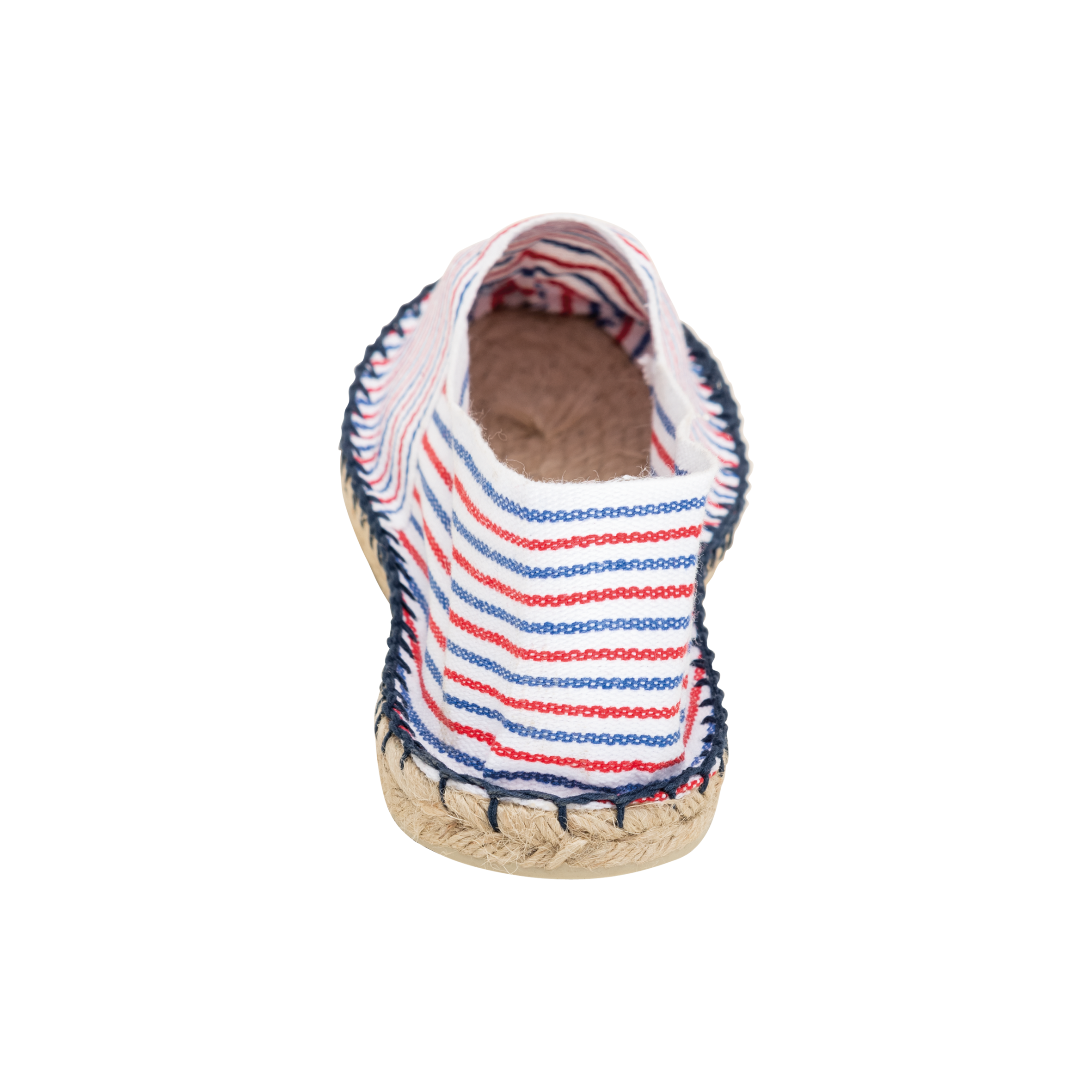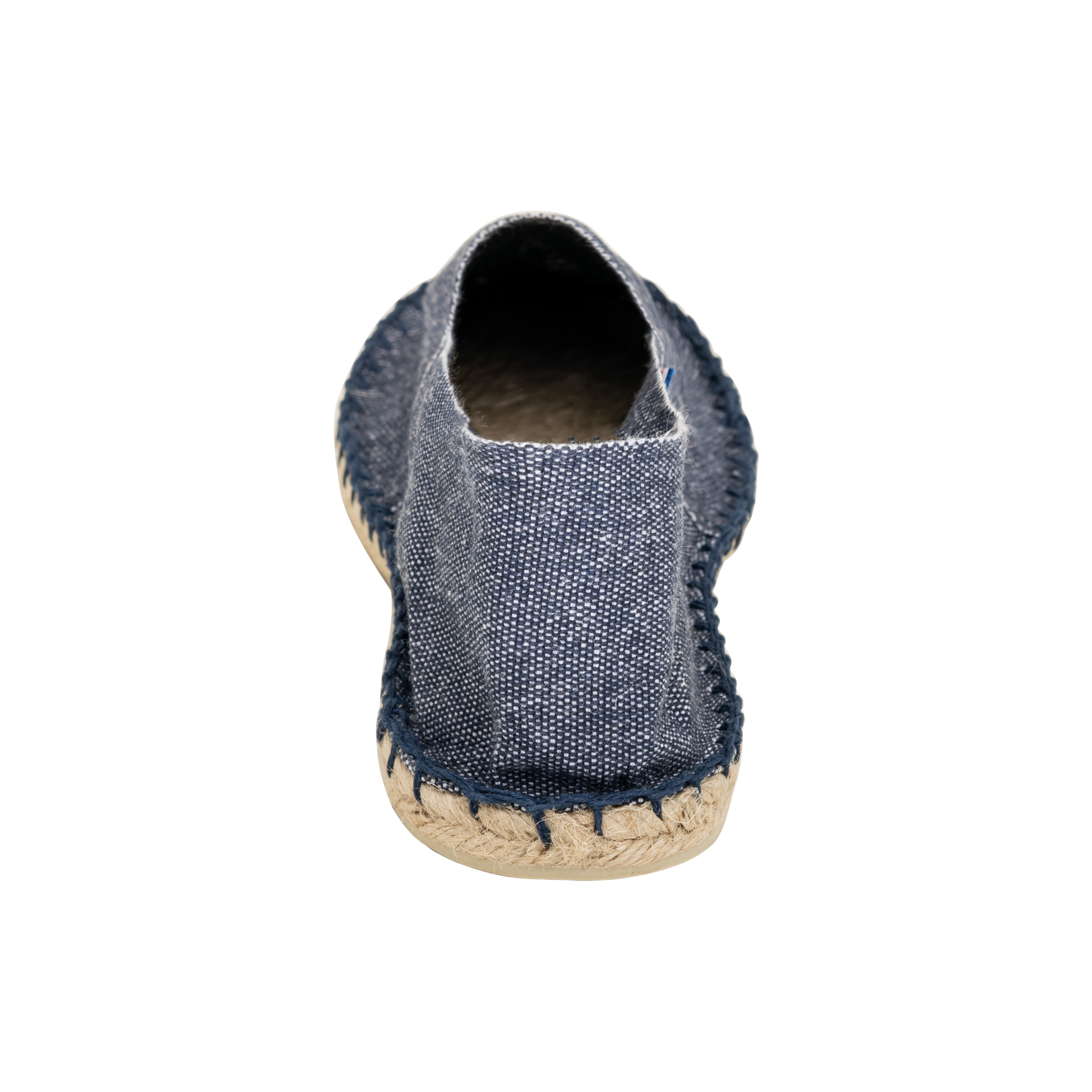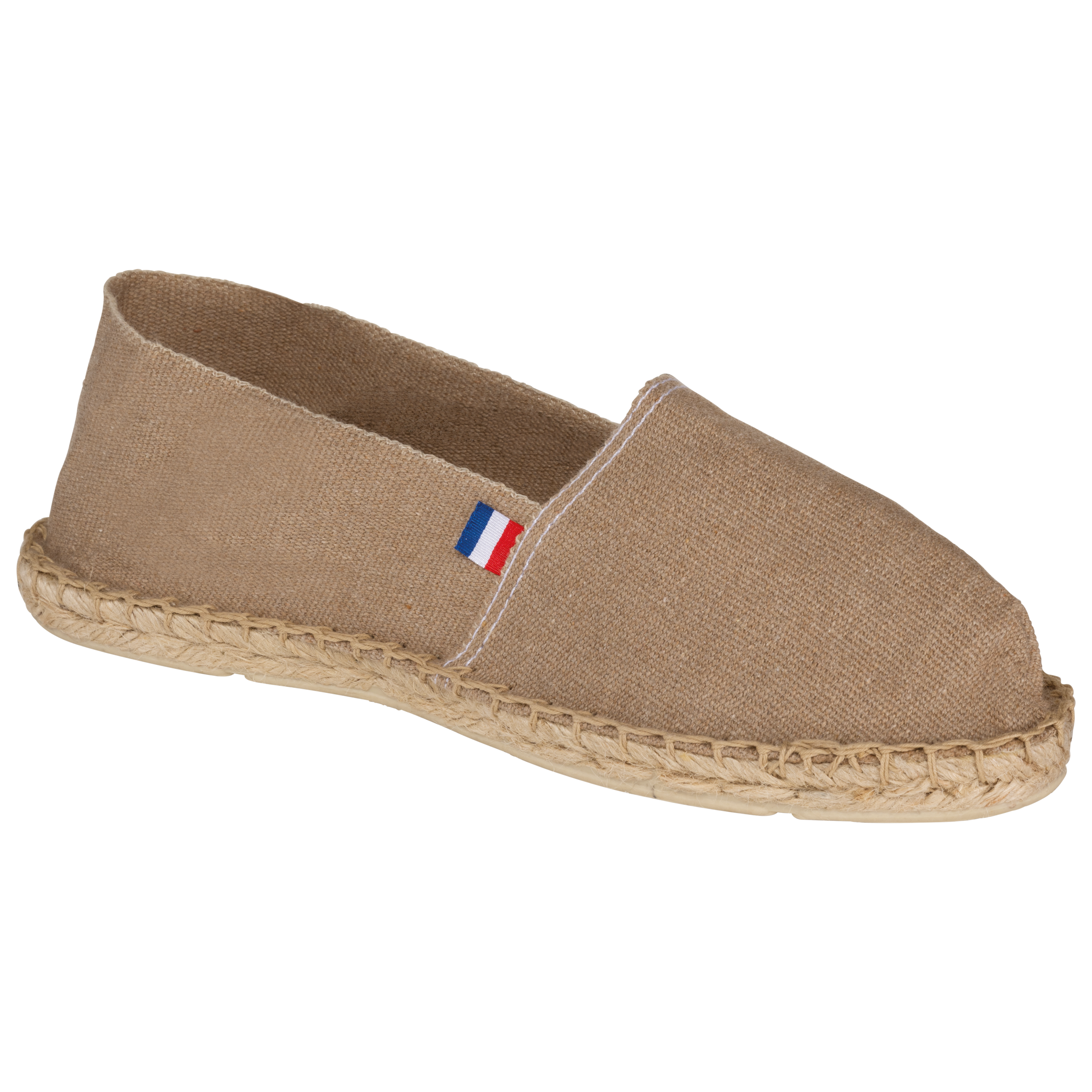 Tela 100% cotone. Suole in gomma vulcanizzata e iuta. Produzione francese.