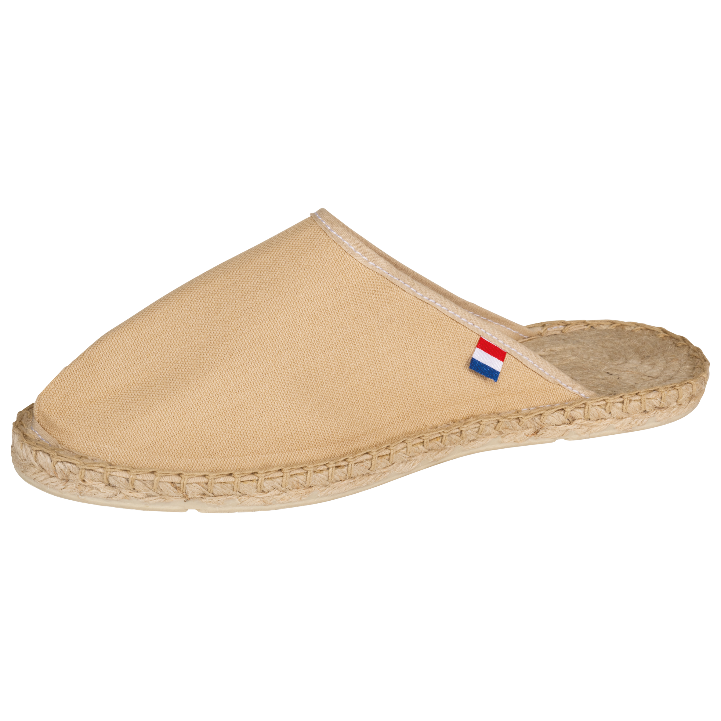 Tela 100% cotone. Suole in gomma vulcanizzata e juta. Finitura a sbieco. Etichetta tessuta a tre colori inserita nello sbieco esterno sul lato sinistro quando viene indossata. Prodotto in Francia.