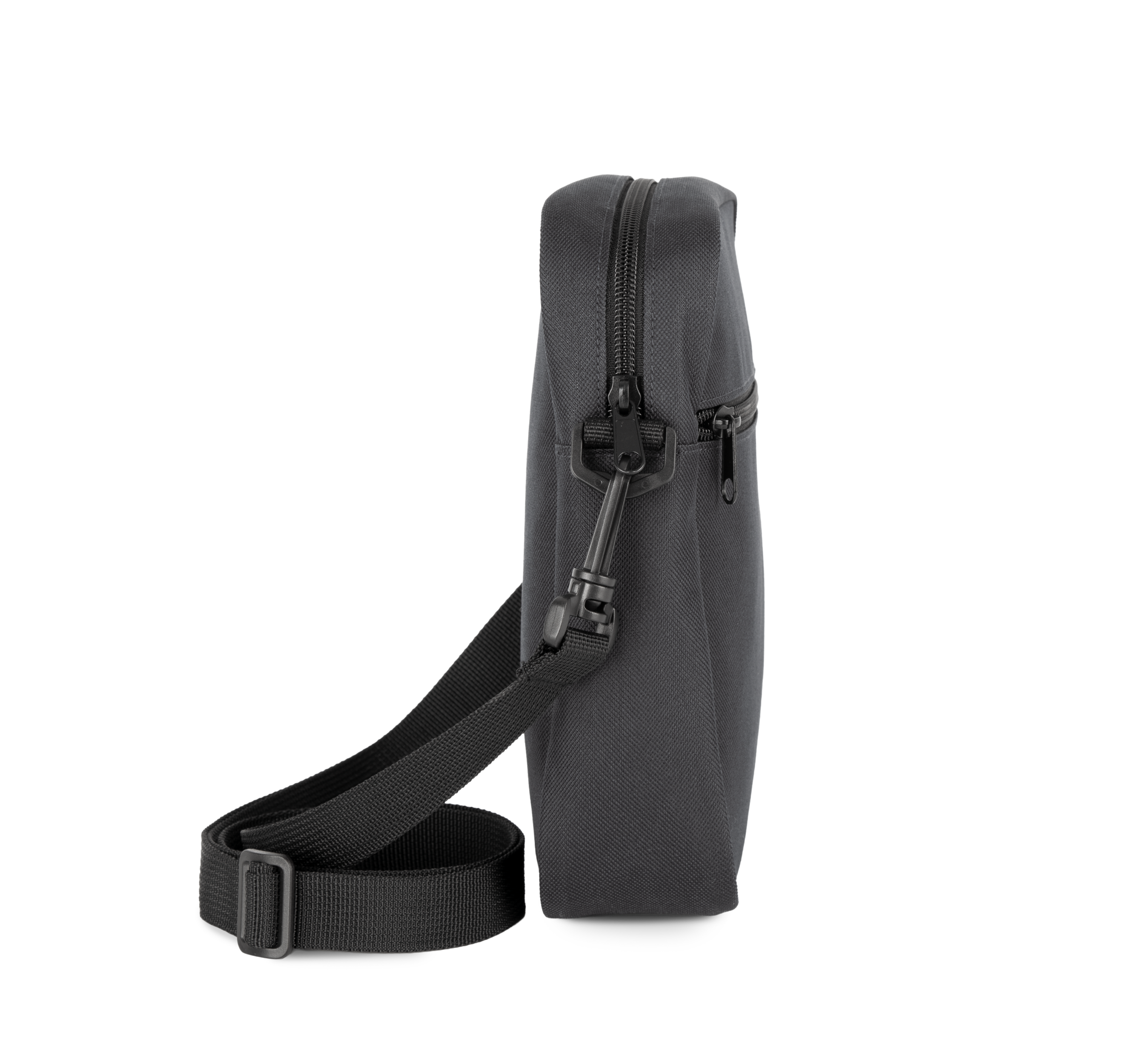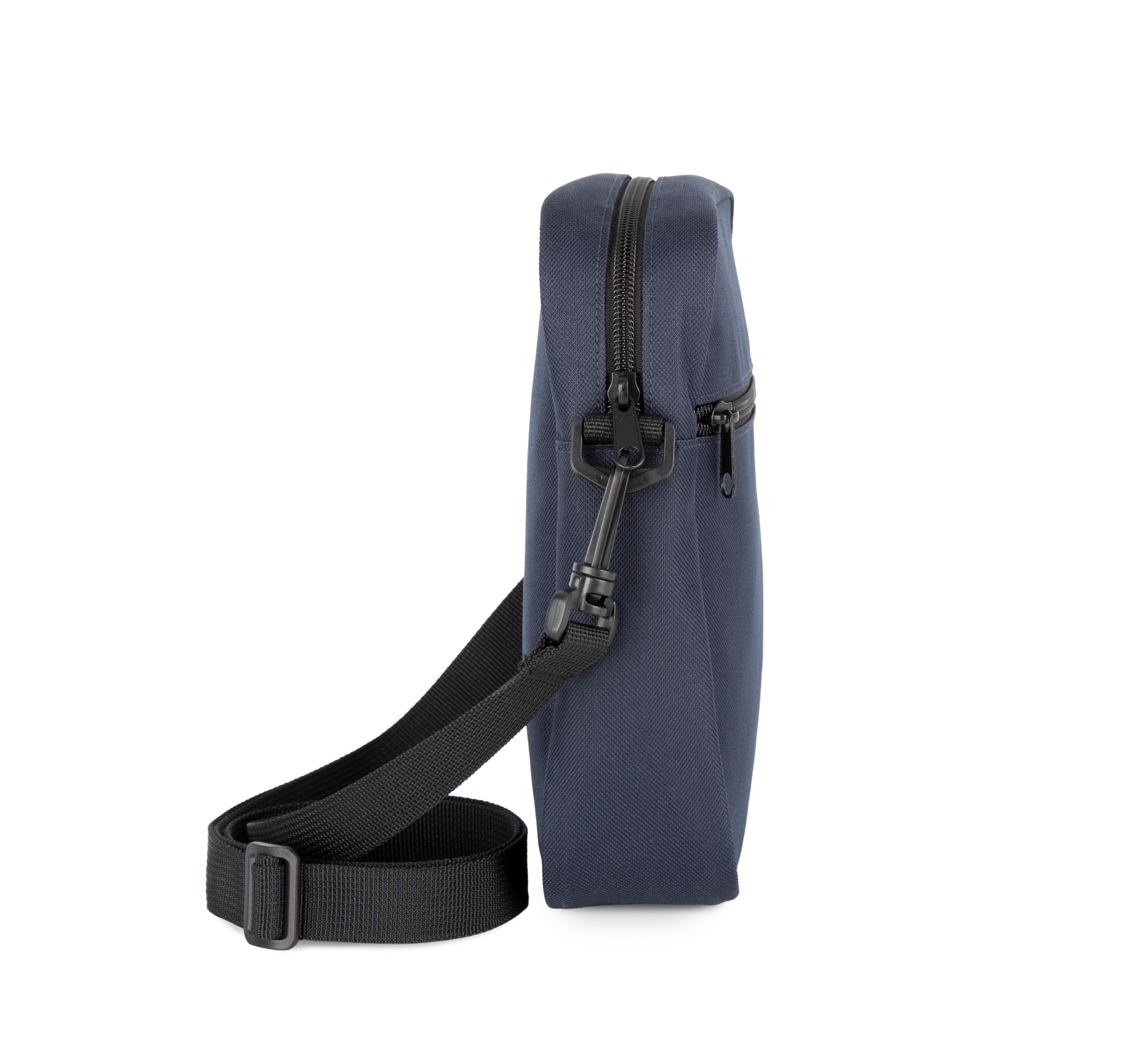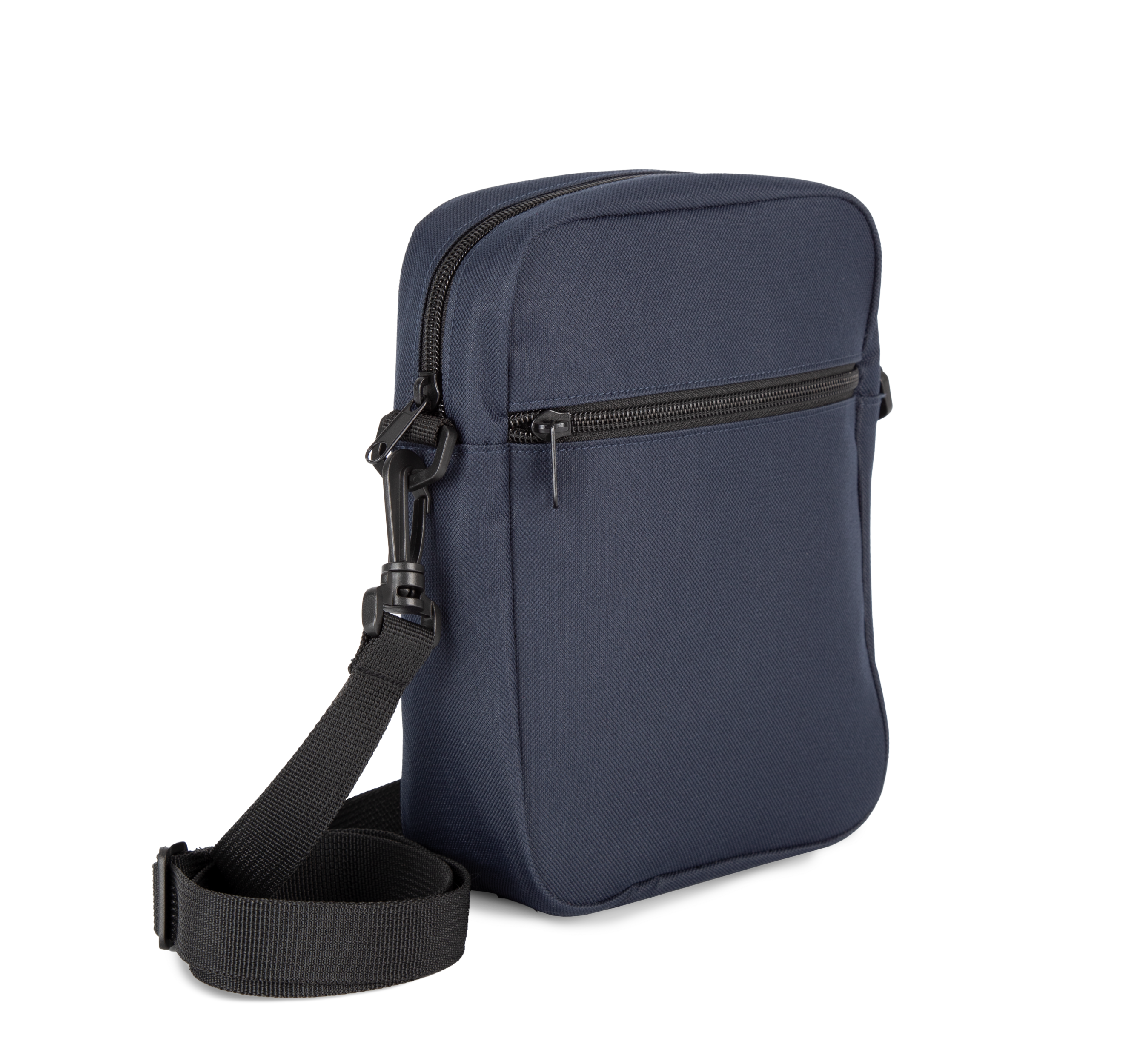 100% poliestere. Borsa a tracolla. Tasca frontale con zip. Tracolla amovibile e regolabile. Disponibile in 2 misure.