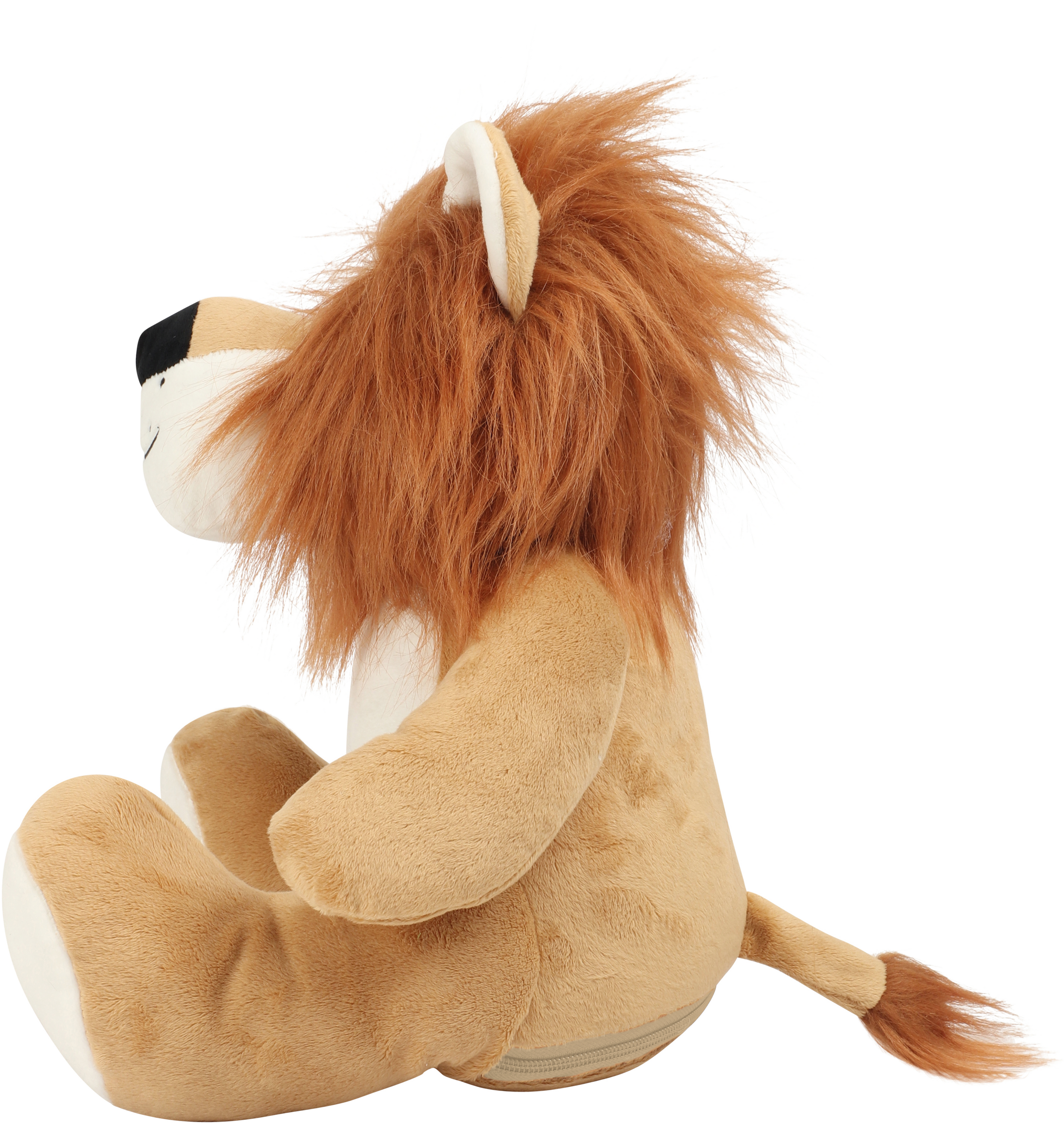 Peluche 100% poliestere. Occhi e bocca cuciti. Criniera e coda a contrasto. Apertura con zip sotto la pancia e imbottitura interna removibile per facilitare la decorazione. Conforme alla norma europea sulla sicurezza dei giocattoli EN 71. Adatto a tutte le età.