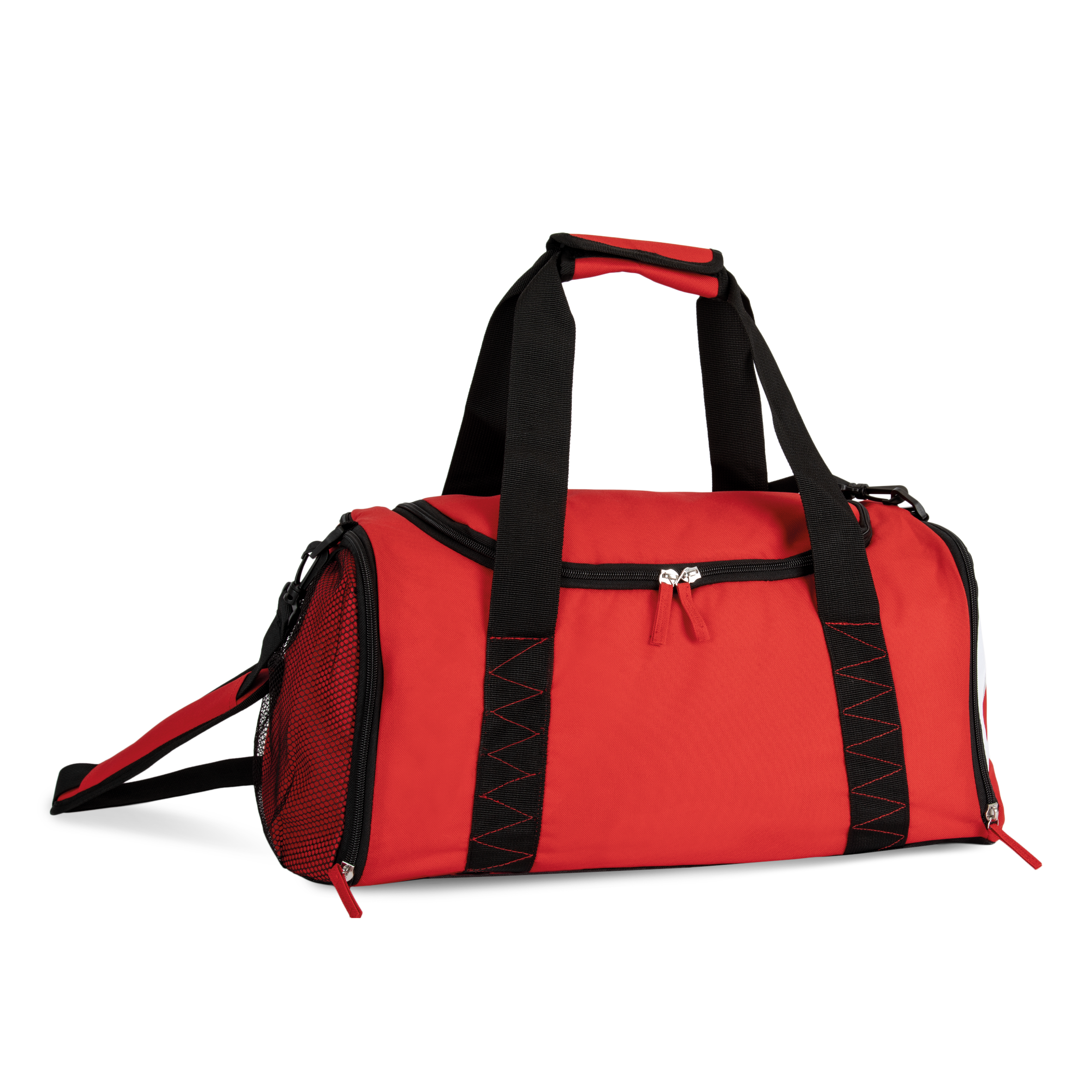 Borsa Sport per squadre, misura media, 55 cm, in poliestere 600D. 2 tasche laterali, una delle quali con portascarpe e una con rete, tracolla removibile e regolabile. Dimensione media 44 litri