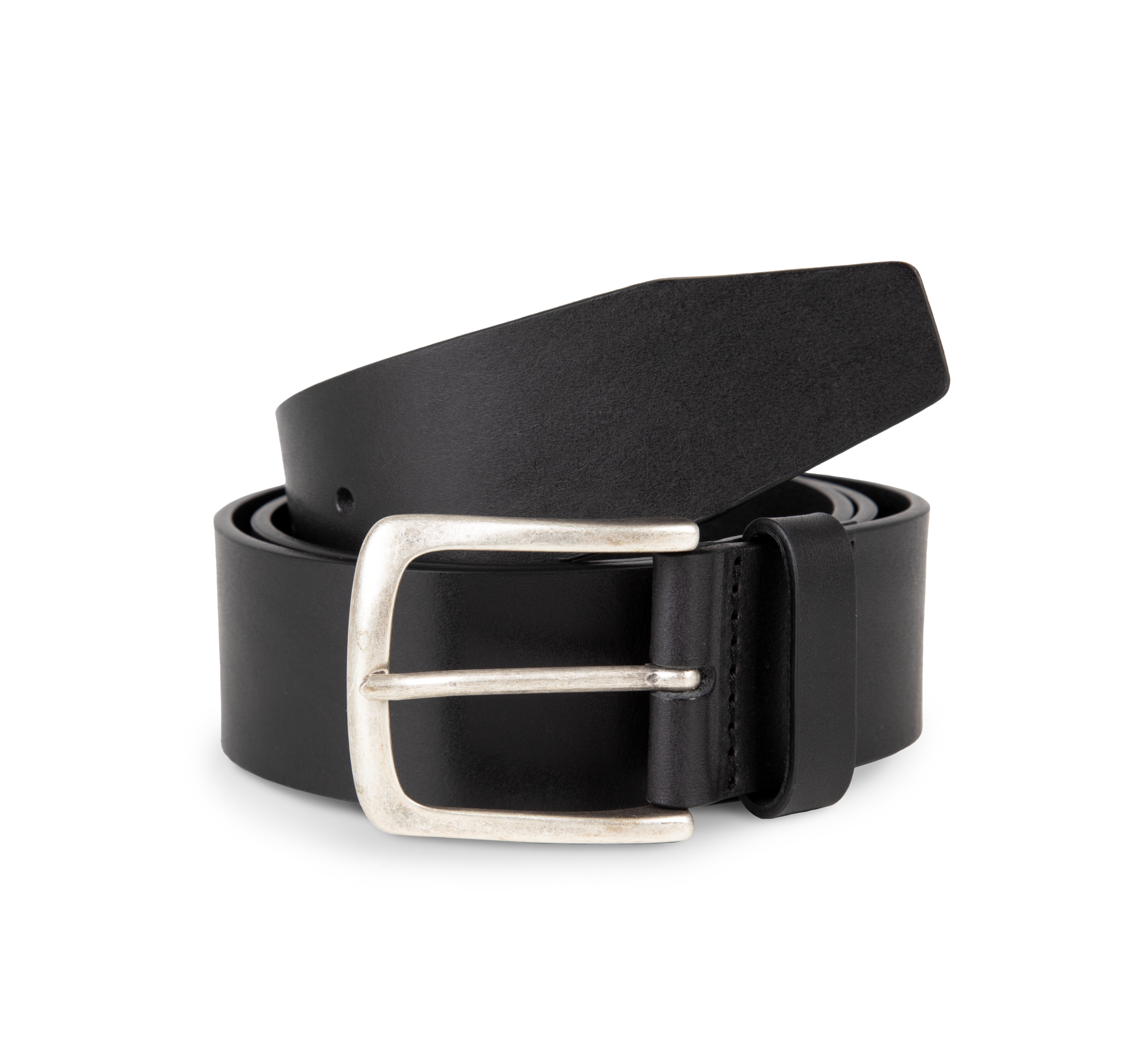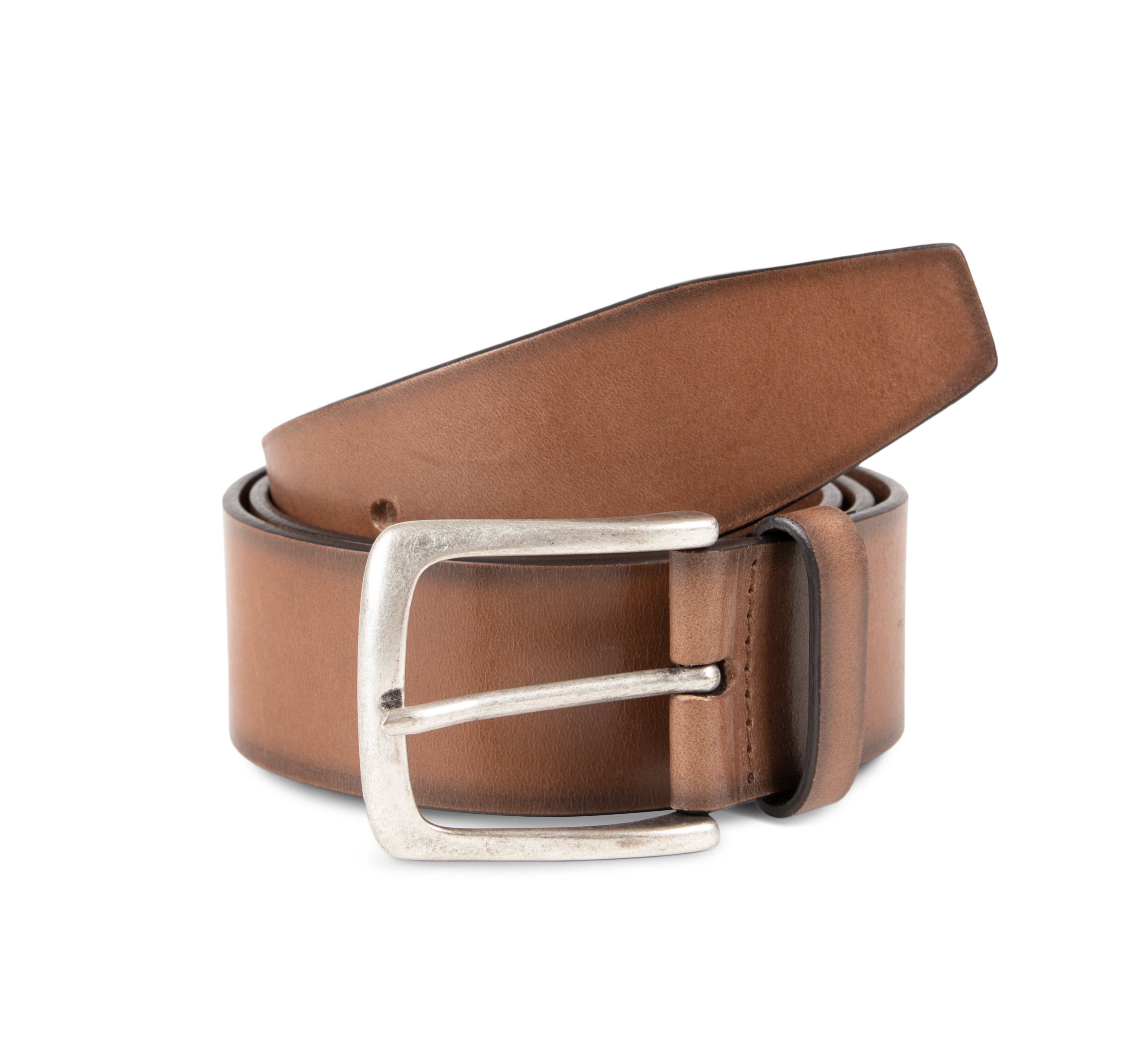 100% pelle. Pelle bovina pieno fiore, finitura in anilina. Cintura piatta realizzata in Italia. 4 taglie disponibili. Fibbia in metallo. Prodotto fornito nell'apposita custodia nera in cotone, per facilitare la personalizzazione.